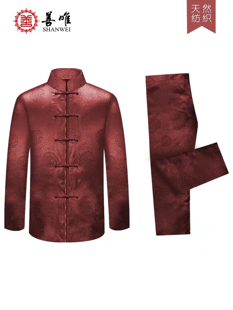 对于老人来说,最常见的便是唐装。